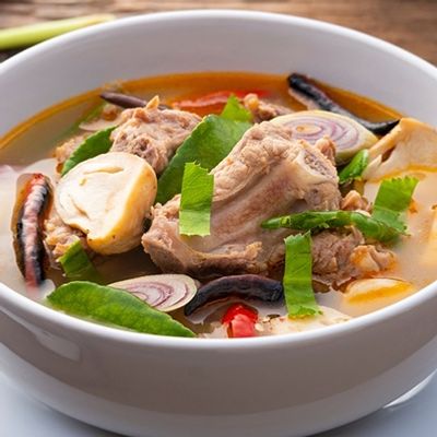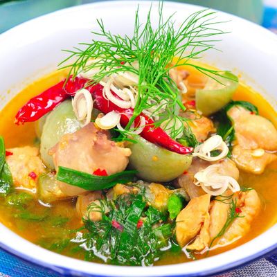 Kaeng Om Kai is a traditional Thai chicken curry soup featuring aromatic herbs and spices, offering a flavorful and hearty dining experience. Perfect for those seeking an authentic taste of Thai cuisine.