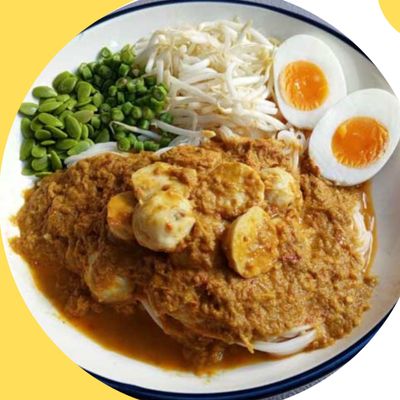 Tai Pla Curry offers a bold, spicy Thai flavor made from fermented fish innards, paired perfectly with soft Kanomjeen noodles for an authentic Thai culinary experience.