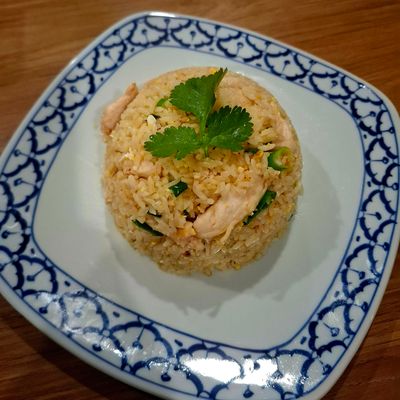 Thai Fried Rice (ข้าวผัด) features fragrant jasmine rice stir-fried with a blend of savory seasonings, vegetables, and optional protein for a flavorful, customizable dish. A popular choice for a quick and delicious meal.