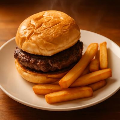 The Kids Burger and Chips features a juicy beef burger served with a side of crispy golden fries, crafted for smaller appetites and big flavors.