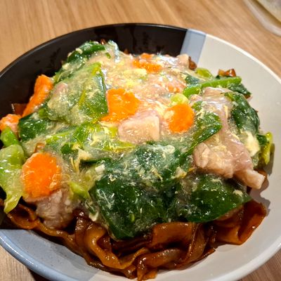Green Curry on Rice features a fragrant, creamy green curry served over steamed rice, offering a balanced combination of spice and richness in every bite.